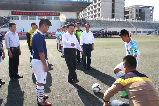 4月27日下午,由校团委主办、体育系团总支承办的开元2016年“酷锐运动杯”足球联赛在新校区体育场拉开帷幕。校党委副书记米晓东出席开幕仪式并为联赛开球。校党委学工部部长、学生处处长李周让,体育系党总支书记刘崇学,主任吴长稳,化学化工学院党总支书记李建峰,校党委学工部副部长、团委书记黄玮,地理与环境学院党总支副书记于建伟,化学化工学院党总支副书记王大浩,团委副书记赵昕出席开幕仪式。开幕仪式由校团委文体部部长张晓宏主持。