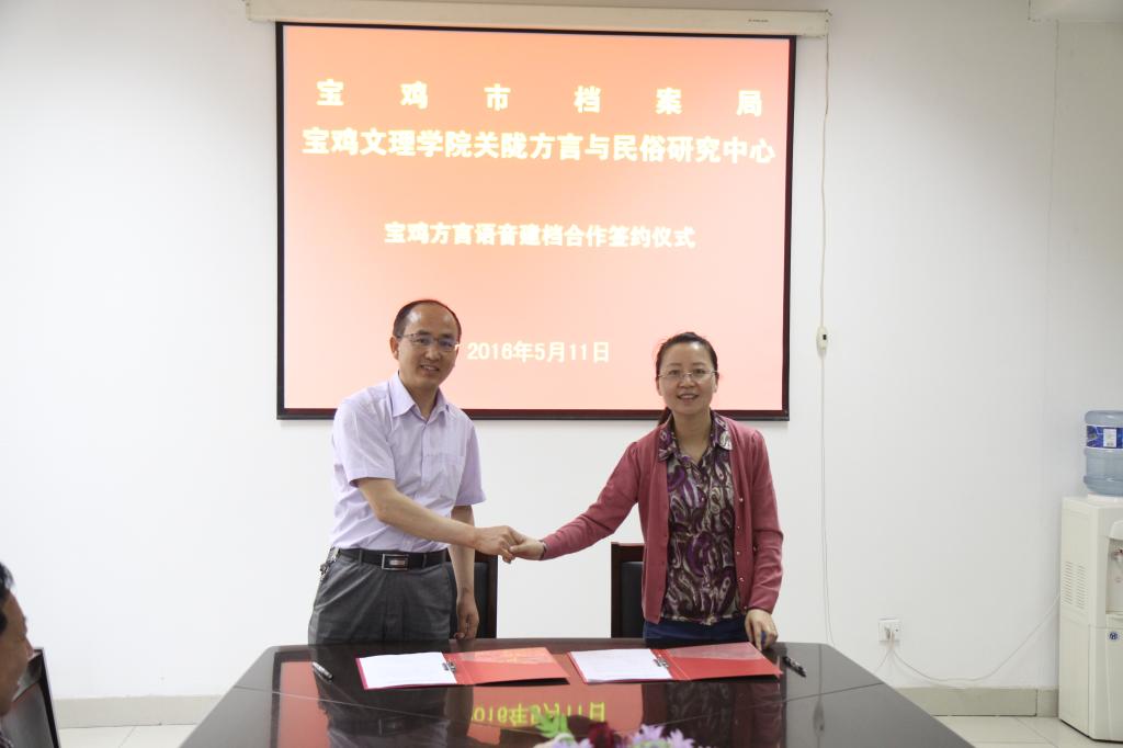 关陇方言与民俗研究中心主任权雅宁教授,宝鸡市档案局局长齐周怀,副局长赵明科、张明霞参加了签字仪式。