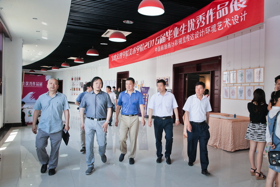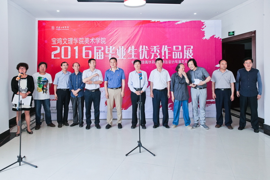6月12日,美术学院在宝鸡展览馆举办的“2016届优秀毕业作品展”隆重开幕,校党委书记白黎、宝鸡市人大常委会副主任富君、宝鸡市政协副主席宋建国、宝鸡市政协秘书长李献卿、宝鸡市文联秘书长冯君礼、宝鸡展览馆馆长何朝林以及宝鸡著名画家王尊农、李升运等应邀出席开幕式并参观画展,宝鸡市副市长武军宣布展览开幕。