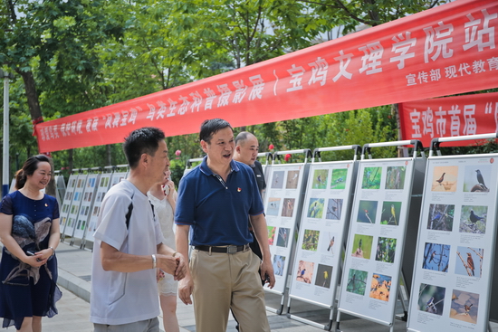 6月20日,宝鸡市首届“凤舞宝鸡”鸟类生态科普摄影展在开元新校区展出。校党委书记白黎,学校宣传部、团委、教学设备与实验室管理处等相关部门负责人观看了本次摄影展。