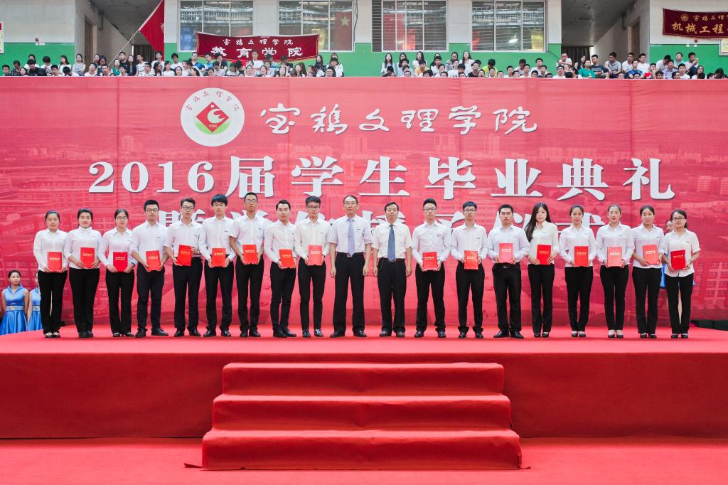 化学化工学院凡明锦代表全体教师对圆满完成学业的2016届毕业生表示衷心祝贺,希望毕业生在步入社会之际要以自己是宝文理的一员而感到骄傲和自豪,今后无论走到何处请热爱母校!毕业生李志刚代表全体毕业生向辛勤培育他们的学校领导和老师表示最衷心的感谢和最崇高的敬意,祝愿母校早日实现建成宝鸡大学的宏伟目标!在校生代表张健向2016届毕业生致以诚挚的祝贺,祝愿他们在实现中华民族伟大复兴的征程中书写文理学子的精彩华章!