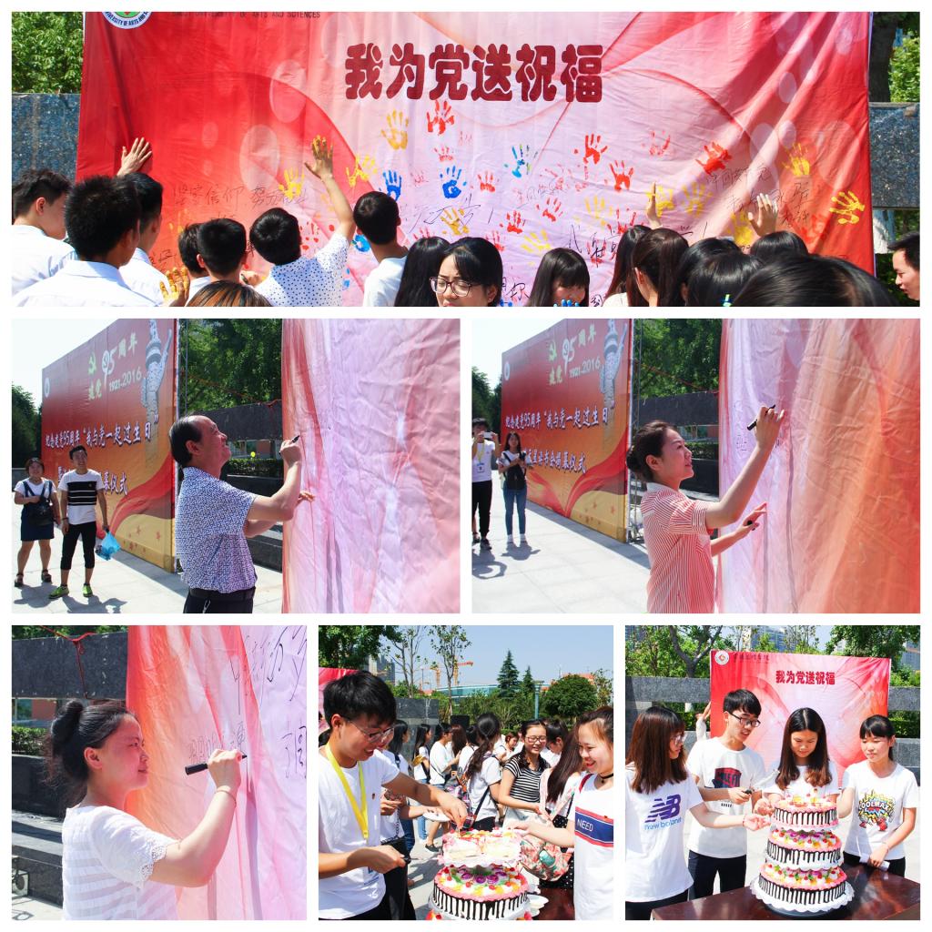最后,大家高唱生日歌,一起切蛋糕,为伟大的中国共产党庆祝生日,更为祖国繁荣昌盛的未来寄以希望和祝福。同学们一起放飞寓意着理想和希望的彩球,并在祝福墙上签名,按下自己的手印,深深表达对中国共产党成立95周年的歌颂和祝福之情。(校团委 文、图/张磊)
