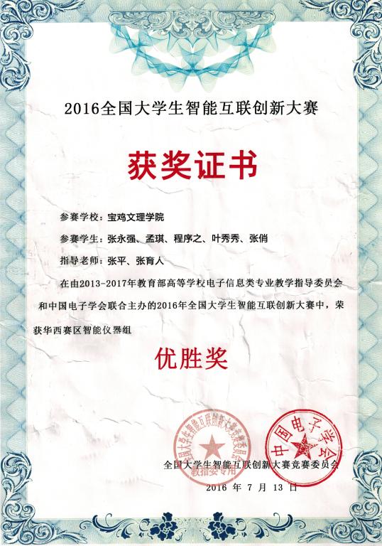 经过网上初选、专家评审、现场答辩等环节,开元参赛队由张平和张育人指导,赵乐汐、张文卓、梁汝豪和刘波共同设计的《智能药箱》荣获智能家居组二等奖,张永强、孟琪、程序之、叶秀秀和张俏共同设计的《智慧用电安全监测仪》荣获智能仪器组优胜奖。(教务处、计算机学院 文、图/张育人)