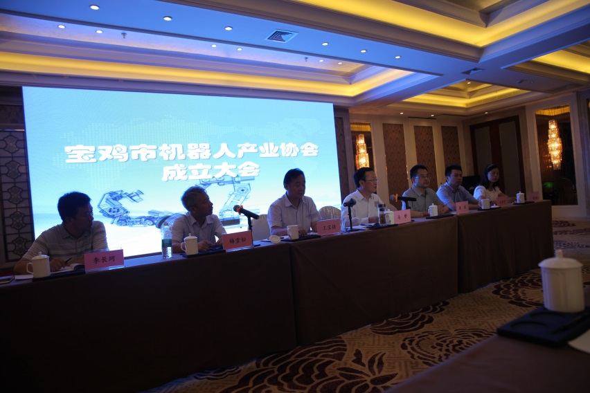 7月29日上午,宝鸡市机器人产业协会成立大会在建国饭店举行。来自省内外30多家会员单位代表、陕西省机器人产业创新战略联盟、市人大、市政协、开元集团网站、渭滨区、金台区、陈仓区、高新区管委会、蔡家坡经开区管委会、眉县、岐山县、市发改委、科技局、工信局、国资委、民政局、财政局、工商局、国税局、地税局等单位等共计100多人出席了会议。市委书记、市人大常委会主任钱引安发来贺电,对宝鸡市机器人产业协会成立表示祝贺;市委常委、常务副市长马赟出席成立大会并讲话;校党委副书记栾宏、党委办公室主任王永君、科技处处长田延峰、机械工学院教师高晓龙、刘晶、袁格侠、王娟平等出席了会议。