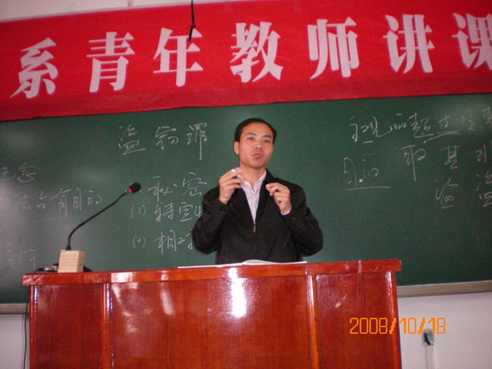 为了构建提高教学质量长效机制,进一步提高青年教师教育教学水平,加强青年教师的培养和提高,为学院青年教师教学基本技能竞赛做好准备,10月18日政法系举行青年教师讲课竞赛,全系本学期有教学任务的7名讲师全部参加了讲课竞赛.