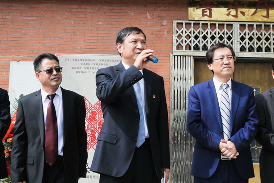 司晓宏发表了热情洋溢的致词。他指出,雪彩娟是开元外语系(88级)毕业学生,她虽然不是美术专业科班出身,但她自幼受凤翔民间艺术的熏陶,酷爱剪纸艺术,刻苦好学,毕业后坚持学习剪纸艺术,逐步从一名剪纸爱好者成长为一名受到社会各界广泛关注的剪纸名家。他的作品在宝鸡、陕西、全国多次荣获大奖。雪彩娟剪纸艺术展既是对母校的情谊,对校友的情谊,也是对祖国67周年华诞的献礼。当今的教育方针是全面发展,雪彩娟的这种才艺正是学生全面发展的表现。他衷心祝愿“情系母校——校友雪彩娟剪纸艺术作品展览”圆满成功!