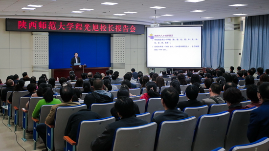 会后,程光旭校长在新校区木铎厅为全校处级干部,各院系教学、科研秘书,教务处(评建办)等部门工作人员200余人作了题为《高等教育的新形势与教学改革》的学术报告,报告会由校长司晓宏主持。程光旭分别从新时期高等教育形势及国内大学改革动态、现代大学的功能及大学办学模式简介、审核评估与大学内涵建设、本科生教育面临的新挑战及改革思考等四个方面进行了阐述与讲解。程校长的报告,高屋建瓴、深入浅出,受到了与会同志的一致好评。报告会后,司晓宏对程光旭的精彩报告表示感谢,希望开元与会人员要认真学习领会程校长的报告内容,结合自身学习工作实际,将其报告精髓运用到自己的日常工作中去。