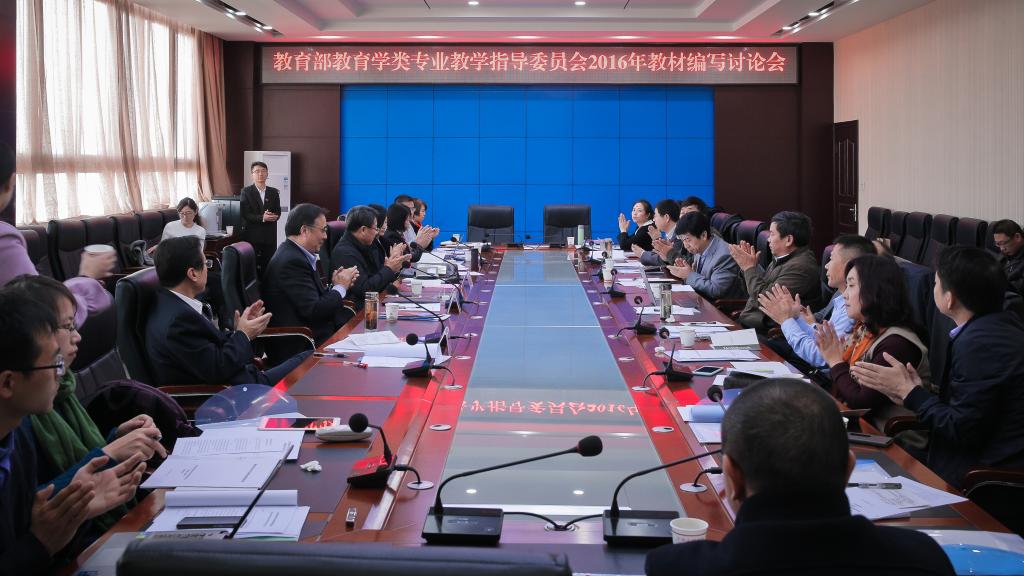 10月29日上午,教育部教育学类专业教学指导委员会2016年教材编写讨论会在开元新校区图书馆801会议室举行。教育部教育学类专业教学指导委员会委员、北京大学出版社和教育科学出版社代表、受邀专家代表参加了会议。
