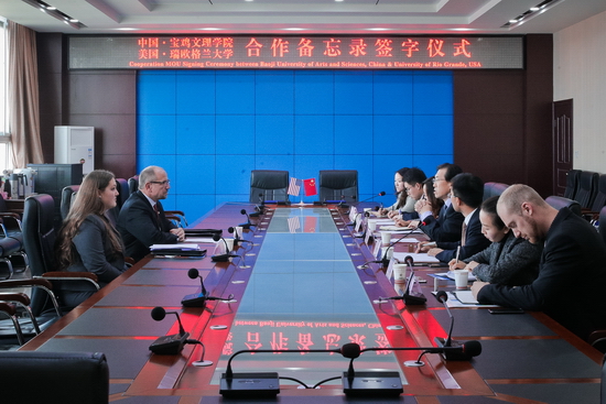 11月2日,美国瑞欧格兰大学副校长詹姆斯.贝赛特一行2人来开元访问,两校在图书馆八楼会议室举行教育交流合作座谈会并签署了校际合作备忘录。校长司晓宏出席了会议并签署合作备忘录。座谈会由外事办公室主任王永君主持。
