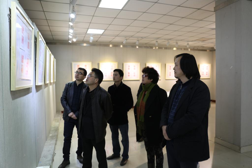 12月6日下午,校党委副书记栾宏前往艺术楼美术展厅,参观美术学院纪念红军长征胜利八十周年师生书法篆刻展。