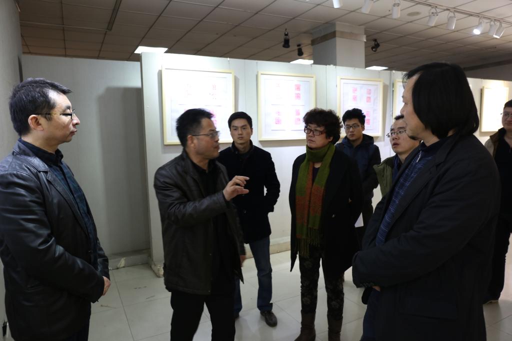美术学院党总支书记石桂荣、院长王宝强,党委宣传部副部长张选朝等陪同参观。(美术学院  文/李强、王宏江  图/赵润棠)