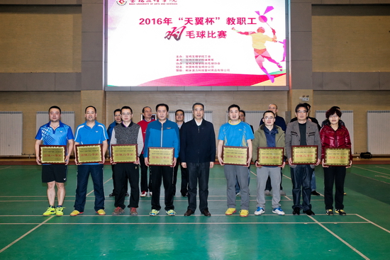 12月5日至9日,2016年“天翼杯”教职工羽毛球比赛在开元体育馆隆重举行。校长司晓宏,校党委副书记傅志军,校工会副主席张鹏、郑存库、郭俊理,中国电信宝鸡分公司副经理张越,中国电信宝鸡分公司校园中心经理杨芳,体育系党总支书记刘崇学,机关党委书记、体育系负责人强晓艺等领导出席开、闭幕式并为获奖代表队和运动员颁奖。张鹏主持开幕式。