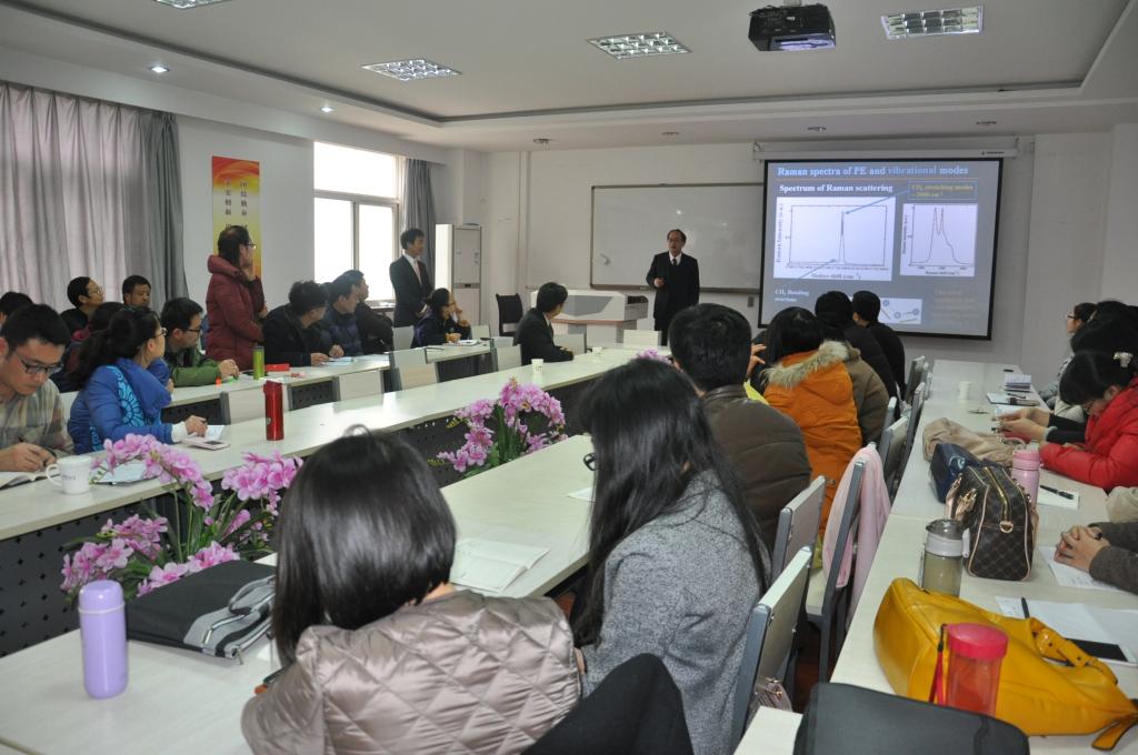 在先进材料国际学术交流会(International Academic Exchange for Advanced Materials)上,中西俊介教授、冯旗教授、凡明锦研究员、胡登卫博士分别作了题为《Introduction of Faculty of Engineering and research activities》、《Developmentof Functional Nanomaterials by Soft Chemical Process》、《GreenLubricant for Furture Life》、《Enhanced Piezoelectric & Energy Storage of TitanateNanocomposites》的学术报告。就各自的教学与科研成果进行了深入的交流与讨论,现场气氛活跃,在读硕士研究生也积极参与讨论,取得很好的效果。报告会全程使用英语作为工作语言。化学化工学院副院长陈强教授、副院长陈虎魁教授、教师代表、硕士研究生、本科生代表60余人参加了报告会。