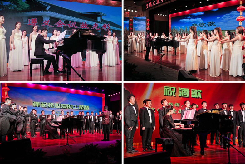 晚会在音乐系民族管弦乐团《春节序曲》的表演中拉开序幕,邓轩担任指挥,李帆演唱的《牧羊曲》和《鸿雁》以及《好汉歌》活跃了现场气氛,获得好评。爱乐合唱团白壮担任指挥,分别演唱了女声合唱《遵义会议放光彩》、《丰收歌》和男声合唱《弹起我心爱的土琵琶》、《祝酒歌》,展现了爱乐合唱团多年来刻苦训练、孜孜追求的风范。由音乐系舞蹈专业学生带来的《佤之猎鸣》和李敏演唱的《锦绣前程》,热情的歌声和优美的舞姿充分展现了新时代青年教师和学生的风采。大学生艺术团和宝鸡永兴社带来的情景音乐快板《携手实现宝大梦》,讴歌了开元大发展的宏伟篇章,给观众留下了深刻印象。郇军德和严洪萍的民歌对唱《婚誓》,委婉声中注入充沛的情感。双人舞《夫妻哨》给观众留下无限的遐想。张文丽和牛雪瑶演唱的《天耀中华》激情澎湃,获得了热烈的掌声。晚会在贺星、连雪梅、薛锋堂及舞蹈专业学生一起带来的大型歌伴舞《我爱你中国》中落下帷幕。