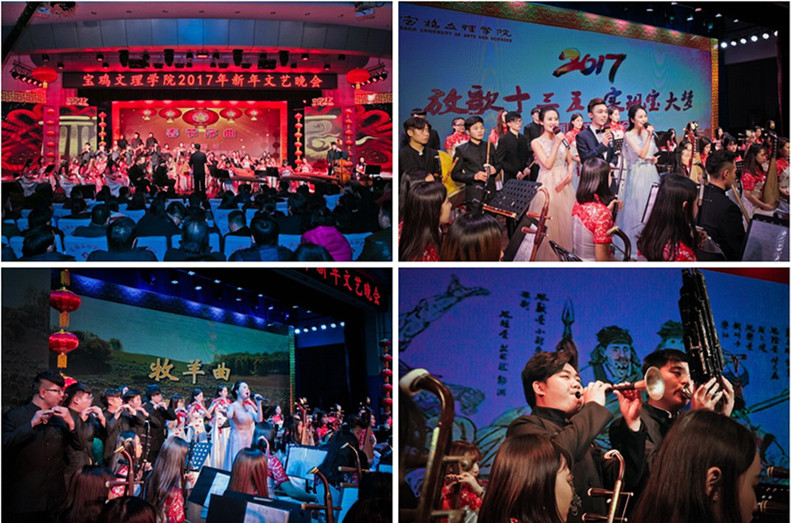 晚会的成功举办,凝聚着所有演职人员、节目策划、导演、主持、灯光音响、视频技术等方方面面的心血和汗水,凝聚着学校各级领导、音乐系、协作单位的大力支持,凝聚着工作人员的辛勤操劳。本次晚会首次以电视直播和网络直播的方式向全校师生直播,获得好评。文理人将搏击未来,共同开创辉煌的发展之路,为宝文理更加灿烂的明天而再奏华章!(校工会 文/弓赞芳 图/张平)