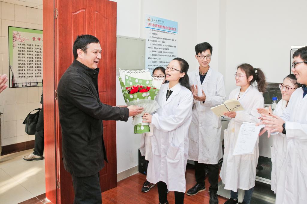 为进一步营造尊师重教的浓郁氛围,大力弘扬尊重教师、尊重知识、尊重人才的风尚,激励先进,鼓舞士气,凝心聚力,为学校创建高水平大学共同奋斗。在3.8国际妇女节当天,校党委书记白黎、校长司晓宏、校党委副书记傅志军深入课堂和实验室,向2016年获得省级以上科研项目和奖项、获得校级优秀教学质量成果奖的女教师代表送去了节日的问候和祝福,送上了鲜花,祝福她们节日快乐、健康平安、工作顺利、一生幸福!感谢她们为学校发展所作出的成绩,祝愿他们再创佳绩、再立新功。