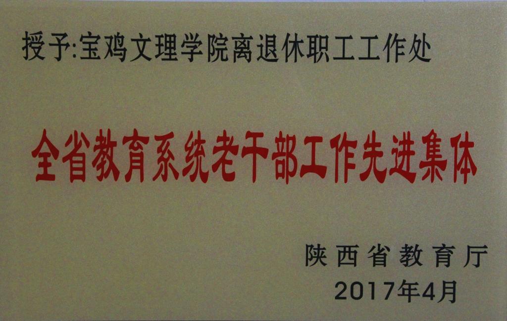5月4日上午,陕西省教育厅召开“全省教育系统老干部工作会议暨‘双先’表彰会议”,总结2016年全省教育系统老干部工作,安排部署2017年工作任务,表彰全省教育系统老干部工作先进集体和先进工作者,各高校分管离退休工作的校领导、受表彰的“双先”代表和离退休部门负责人参加了会议。开元离退处荣获“全省教育系统老干部工作先进集体”称号。(离退休职工工作处 文/李小霞 图/韦海杰)
