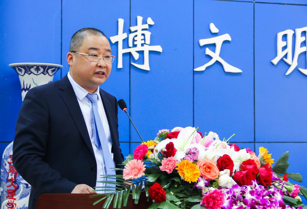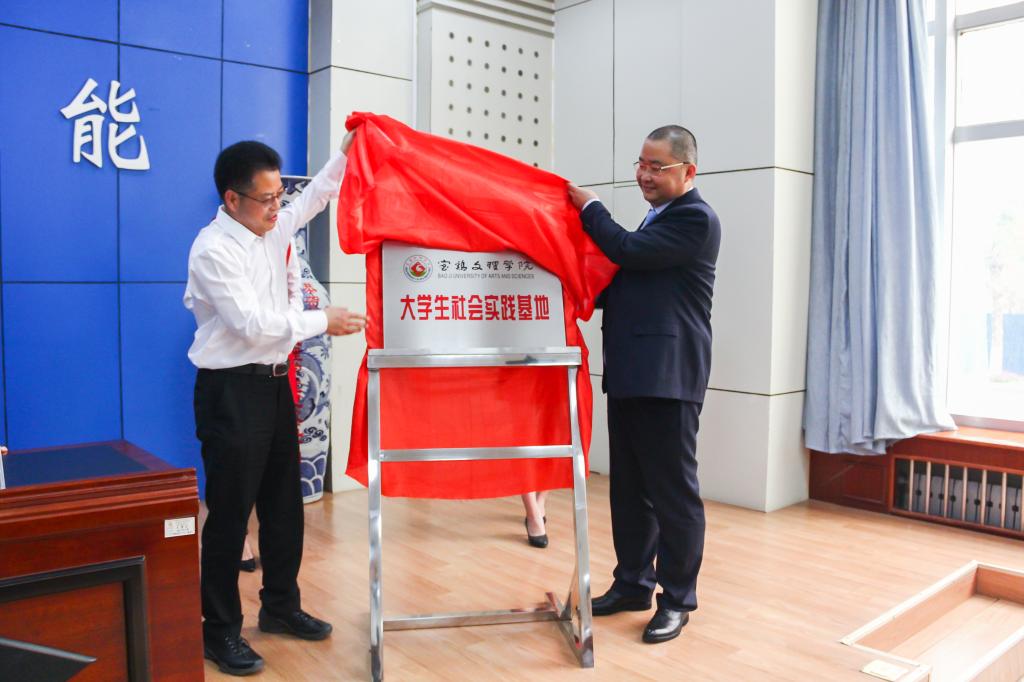 栾宏与李晓敏为大学生社会实践基地揭牌。栾宏在作重要讲话,他希望青年大学生在实践中了解社会,认知文化;在实践中服务社会,彰显价值;在实践中磨炼意志,锤炼品质;在实践中虚心学习,增长才干;在实践中精心组织,确保安全;在实践中听从指挥,遵守纪律。开元93级经济管理学院优秀校友李晓敏发表了热情洋溢的讲话,讲述了自己从下岗失业到励志创业,从下乡收购到开办博物馆,从保护藏品到弘扬传统文化的人生故事,表达了自己对母校的感恩和对社会的回报之情。学工部副部长、团委书记黄玮、历史文化与旅游系团总支书记樊俊青、青马班学生代表机械工程学院王力分别发言。