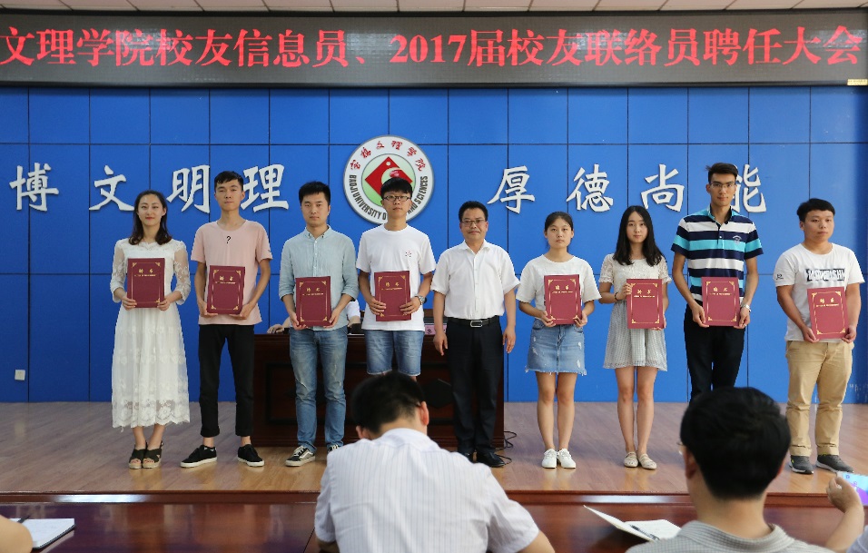 创建高水平大学办公室主任、校友总会副会长赵智劳,副主任、校友总会秘书长田富平分别宣读了《关于聘任开元集团网站校友工作信息员的决定》和《关于聘任2017届毕业生校友工作联络员的决定》。白黎和栾宏为19名校友工作信息员以及243名2017届校友联络员代表颁发了聘书。文学与新闻传播学院校友信息员王华斌老师和计算机学院2017届校友联络员代表张军同学发言。