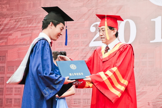 白黎、司晓宏为硕士学位、学士学位获得者代表扶正流苏、颁授学位证书;杨子元宣读2017届硕士研究生学位授予决定、本科生毕业资格审查结果和学士学位授予决定;赵荣侠宣读优秀毕业研究生、优秀硕士论文获得者、优秀本科毕业生表彰决定;傅志军、王富平、段恒春为优秀毕业研究生和优秀本科毕业生代表颁发荣誉证书。