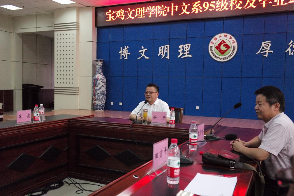 校友代表、陕西省司法厅干部王文辉做了发言。他说,两年多的校园生活,一生难忘。当年班上许多同学虽身为专科生,但许多同学毕业时拿到了自考的本科。20年来,同学们自强不息,已经成长为基础教育或其他行业实实在在的中坚力量,得益于母校严谨的校风和学风化育,得益于老师们当年辛勤的培育。看到学校新老校区天翻地覆的变化,非常震撼;而且听说学校又要开辟新校区,不仅第一批硕士顺利毕业了,而且在近年将创建成宝鸡大学,同时将启动博士点申报,作为校友,非常激动和自豪。只能立足本职岗位,继续做好工作,才能不辜负母校的培养。其余各位校友一一发言,向母校汇报了自己的学习、生活和工作情况,表达了对母校深挚的感恩之情。