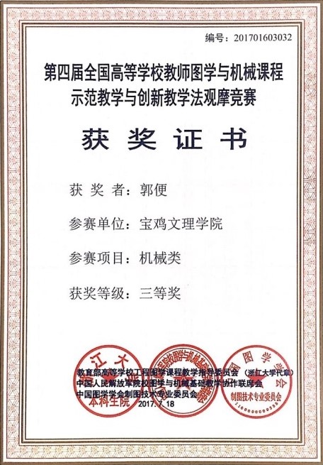 7月16-18日,第四届全国高等学校教师图学与机械课程示范教学与创新教学法观摩竞赛在兰州交通大学举行,来自国防科技大学、哈尔滨工业大学、大连理工大学、重庆大学、西北工业大学等72所高校推荐的近百名优秀教师参加了比赛。开元机械工程学院选派了王玮、郭便两名专业课教师参加该项赛事,经过预赛和决赛两个环节的激烈角逐,两位老师均荣获大赛机械类课程三等奖。