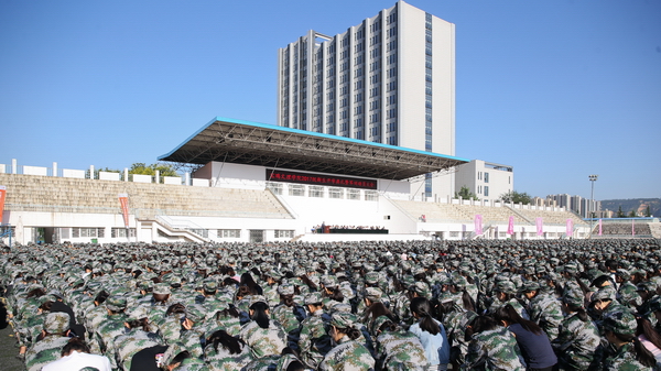 各二级学院总支书记、院长,各职能部门主要负责人,2017级全体新生及承担开元新生军训任务的96607部队军训团全体官兵参加了大会。(教务处 文/刘继文 图/张平)