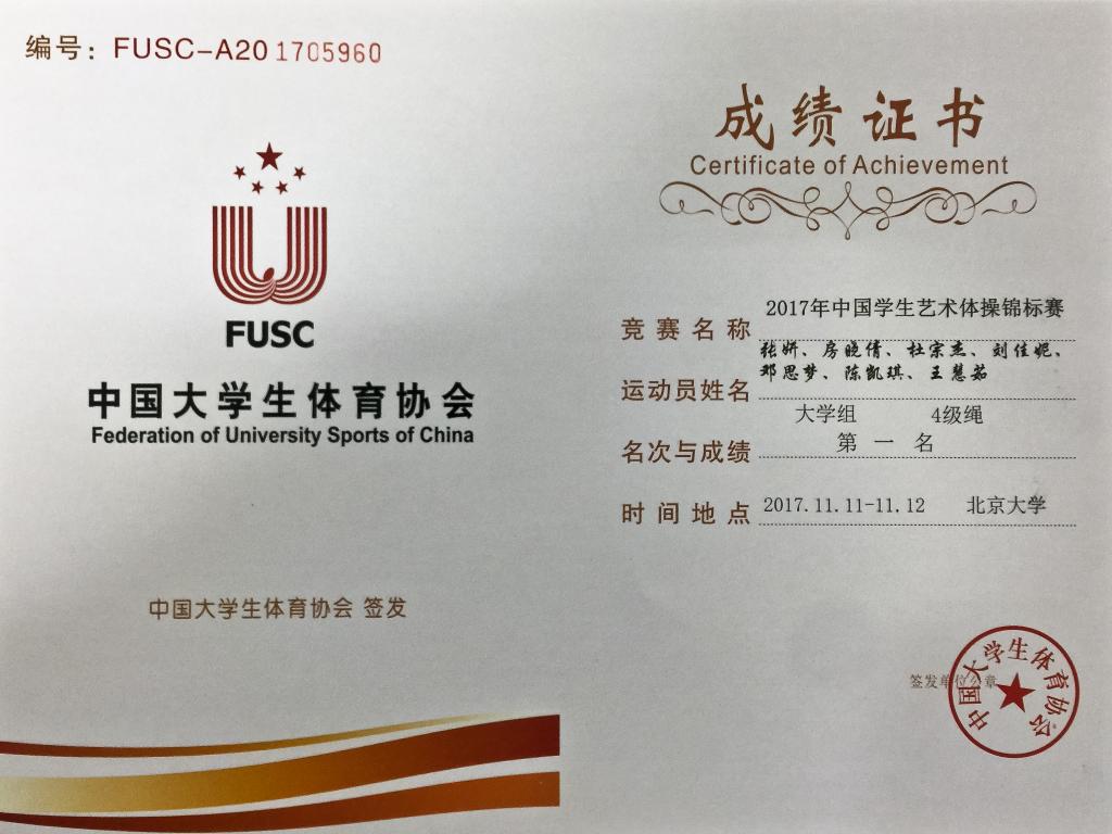 11月9日-13日,2017年中国学生艺术体操锦标赛在北京大学邱德拔体育馆举行,开元大学生艺术团艺术体操队一举夺得集体项目三项第一、两项第二、一项第三的骄人成绩,并获得体育道德风尚奖,实现了开元在全国艺术比赛中的首次突破。