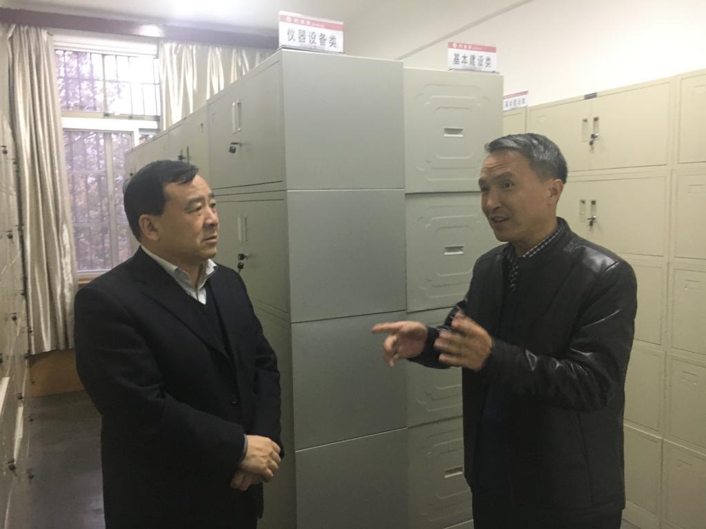 校党委宣传部部长冯飞龙陪同检查。(档案馆 文/朱伟 图/赵钊)