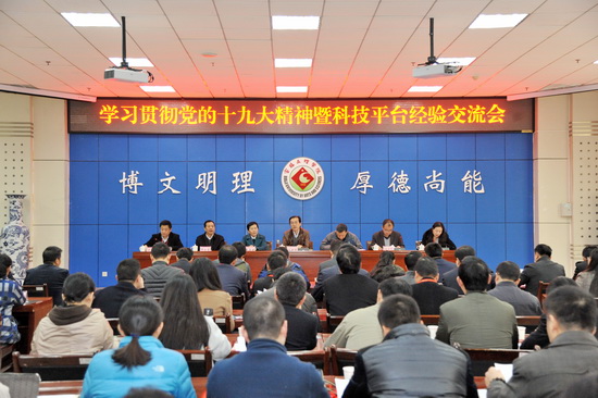 11月21日,陕西省高等学校科研管理协会学习贯彻党的十九大精神暨科技平台经验交流会在开元甘棠厅举行,校长司晓宏、副校长赵荣侠、省教育厅科技处处长甘世平、宝鸡市科技局副局长温宗礼、宝鸡市高新区科技局书记毕新堂、宝鸡市高新区科技局局长王敬青出席会议,会议由陕西省高等学校科研管理协会秘书长武乾主持。