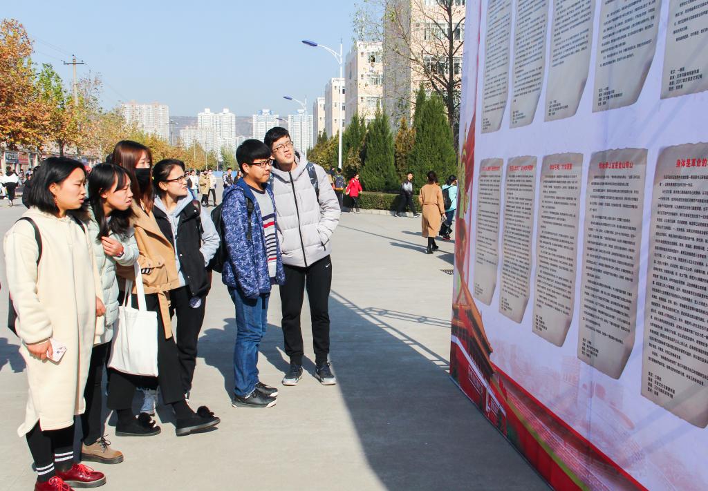 12月5日上午,由校团委主办、美术学院承办的“学习贯彻党的十九大 文理学子心向党”我最喜爱的习近平总书记的一句话,网文征集活动获奖作品展在高新校区举行。校党委副书记栾宏出席活动。