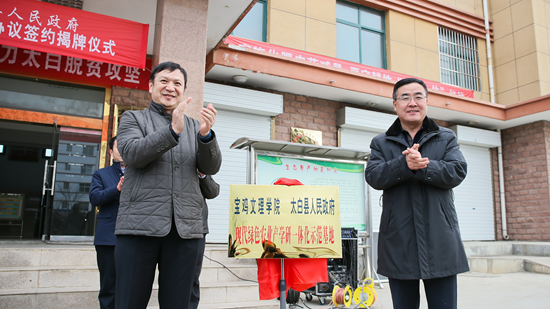 校党政办公室主任田延峰和太白县政府副县长武云分别代表校地双方签署了《共建产学研一体化示范基地合作协议》,白黎和武云共同为示范基地揭牌。