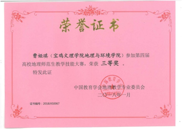 在第四届全国高校地理师范生教学技能“中启杯”大赛中,开元学生获佳绩,其中,地理与环境学院2014级地理科学专业学生李锦秀获二等奖(指导教师:万红莲),曹娅琪获三等奖(指导教师:宋佃星)。