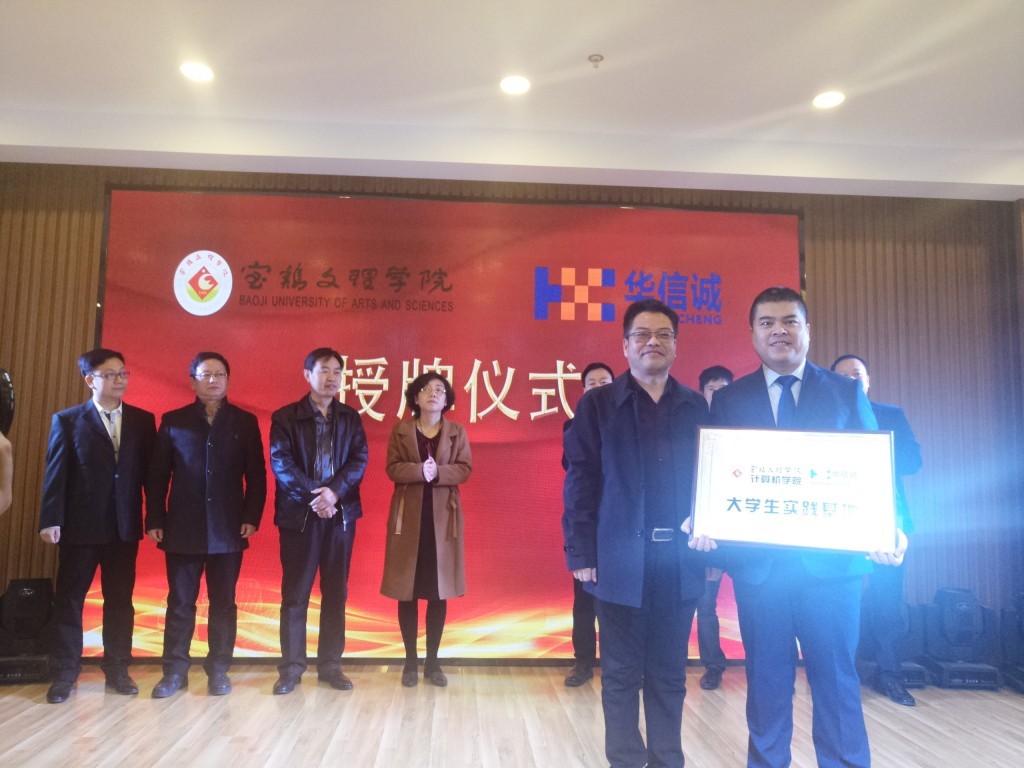 3月14日上午,计算机学院与宝鸡华信诚电子科技有限公司校企合作签约暨华信诚教育奖励基金启动仪式在宝鸡市渭滨区互联网产业园举行。校党委副书记栾宏出席启动仪式并为宝鸡华信诚电子科技有限公司授牌,渭滨区区委常委、副区长段葆青为计算机学院颁发了教育奖励基金。仪式由渭滨区工信局局长徐新军主持。