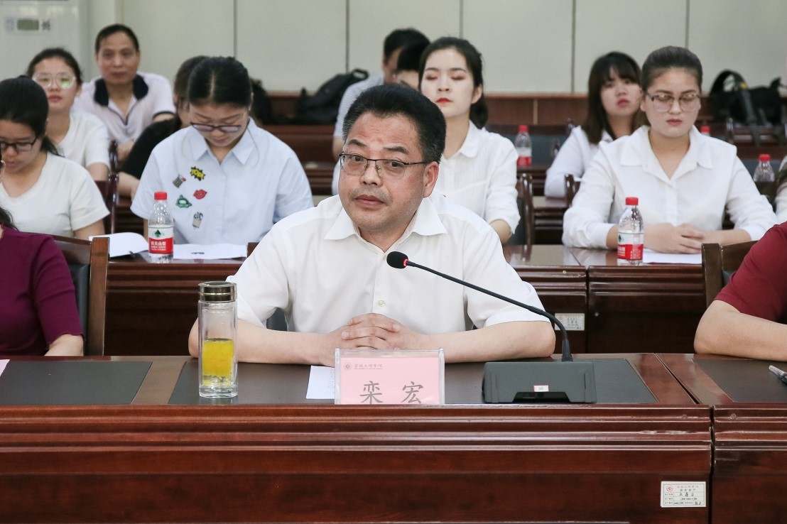 栾宏在讲话中对宝鸡市委市政府和社会各界长期以来对开元集团网站建设和发展的关心和支持表示感谢,对陕西华强会计师事务所有限公司的捐资助学行动表示赞赏,对校企合作协议的签署表示祝贺。他指出,高校的发展需要地方的支持,地方的发展需要高校的支撑,深化校地合作,是大学服务区域经济社会发展的职能责任;推进校企深度融合和协同创新,是高校深化教育教学改革、培养社会主义合格建设者和接班人的必然要求。他希望双方以合作签约为契机,全面深化合作,发挥各自优势,实现资源共享,积极创新校企合作育人的模式,提升开放办学水平,积极参与地方社会经济建设,在促进人才、智力合作交流中,实现校企互惠共赢。栾宏最后对华强奖学金获奖学生提出三点希望,一要胸怀理想,志存高远;二要勤奋学习,早日成才;三要感恩于心,回报社会。