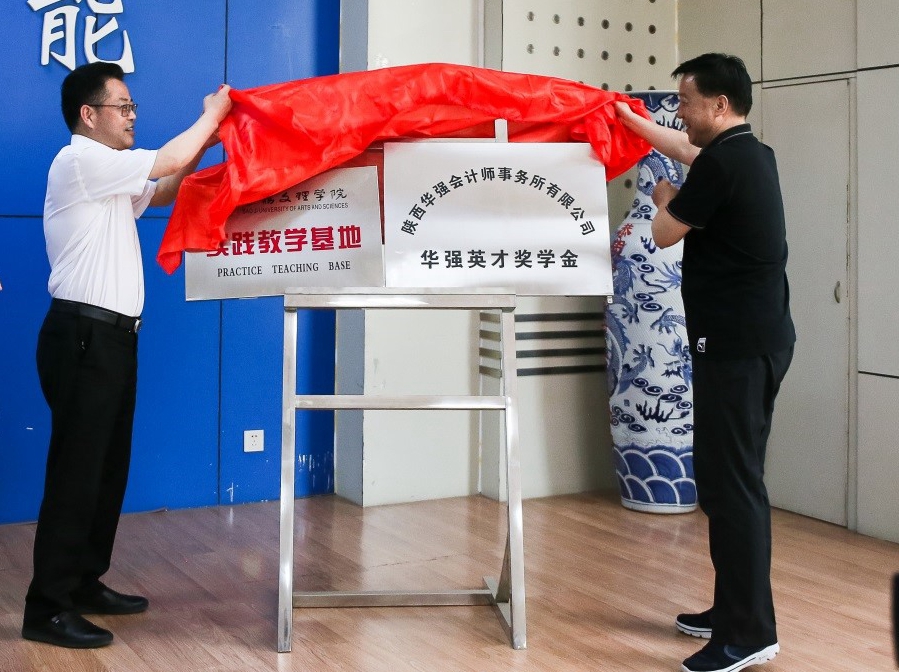 仪式上,张万奎和栾宏共同为“开元集团网站教学实践基地”和“华强英才奖学金”揭牌。