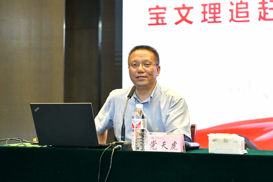 报告会上,党天虎结合自己多年从事中小企业管理的丰富经验,围绕如何正确看待党的十九大之后中国发展的逻辑、十九大给我们带来的重要发展机遇期、我们如何才能跟上新时代的脚步等三个方面全面系统解读了陕西省、宝鸡市当前产业发展面临的新特点、新态势。他在客观准确分析省市当前经济、社会全方位发展现状的基础上,深刻独到地指出了学校当前面临的五个最佳发展机遇:一是十九大召开之后所展现的前所未有的政治机遇,二是宝鸡发展大会提出的追赶超越的发展机遇,三是宝鸡发展大会部署的文化发展机遇,四是宝鸡经济社会产业重大变革带来的创新机遇,五是宝鸡供给侧结构性改革带来的需求机遇,为我们带来了富有前瞻性的思维观念,开阔了干部和教师队伍的视野。最后,他重点围绕开元如何立足当前,进一步发挥高校人才资源和科研技术力量的优势作用,更好助推宝鸡经济社会大发展,早日实现开元创建高水平宝鸡大学的目标任务提出了要构建六个平台、六个机构的合理化路径建议。