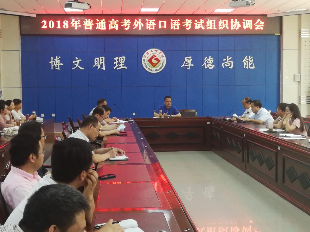 考前,学校召开了外语口试工作动员会议,对考试工作进行了安排,栾宏出席会议并强调,外语口语考试是普通高考的一部分,关系到学生的切身利益,关系到学校的声誉,2018年外语口语考试要做到“七个到位”,即重视到位、责任到位、纪律到位、宣传到位、培训到位、服务到位、应急到位,他希望各小组高度重视、相互配合、明确责任、热情服务、公平公正。会议由招生就业处处长李周让主持,副处长俱国鹏对有关考务工作进行了安排,外国语学院院长王卫强对口语教师进行了专业培训。