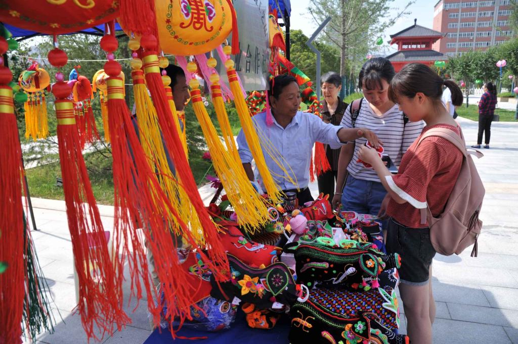 据悉,本次参加展览活动的有千阳县美苑民间艺术有限公司、千阳县兴鑫工艺品合作社等5家,共展出独具特色的香包、刺绣等民间工艺品56种20000余件。千阳民间刺绣传承人杨林转、李惠莲和剪纸大师白招凤和刺绣艺人史玉莲等8人还现场表演技艺,使同学们感受到了传统佳节的魅力,享受到了传统文化艺术带来的快乐。