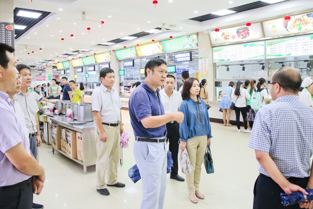 在学生餐厅,校领导查看了餐厅改造情况、饭菜供应准备、卫生状况及质量监管等情况,听取后勤集团(公司)负责人工作汇报后,校领导要求:一是紧盯食品安全各环节不放松,依照相关规章制度,严格落实行业标准要求;二是进一步细化管理措施,强化服务意识,切实提升服务质量,不断提高后勤服务的精细化管理水平,以良好的精神面貌迎接新学期的到来;三是注意食品卫生安全,科学调剂饮食,稳定饭菜质量与价格,并在菜品多样化上下功夫,给学生提供更好的饮食服务。特别是清真食堂的运营方面,一定要遵循民族风俗习惯要求,多方关心少数民族学生的日常生活,做到让学生满意、让家长放心。