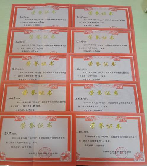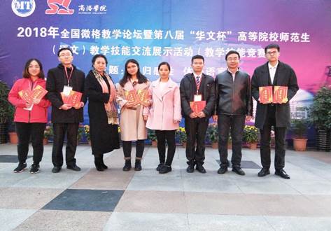 11月9日至12日,中国教育技术协会2018微格教学论坛暨第八届“华文杯”高等院校师范生(语文)教学技能交流展示活动在商洛学院举行。文学与新闻传播学院在副院长孟改正和赵玲教授的带领下,选派了汉语言文学专业的高娜、潘云腾、陈胜杰、李庆华和冯港五名学生参加比赛,并最终获得特等奖5项、一等奖2项、二等奖2项和三等奖1项的喜人佳绩,孟改正和郑新丽被评为优秀指导教师。