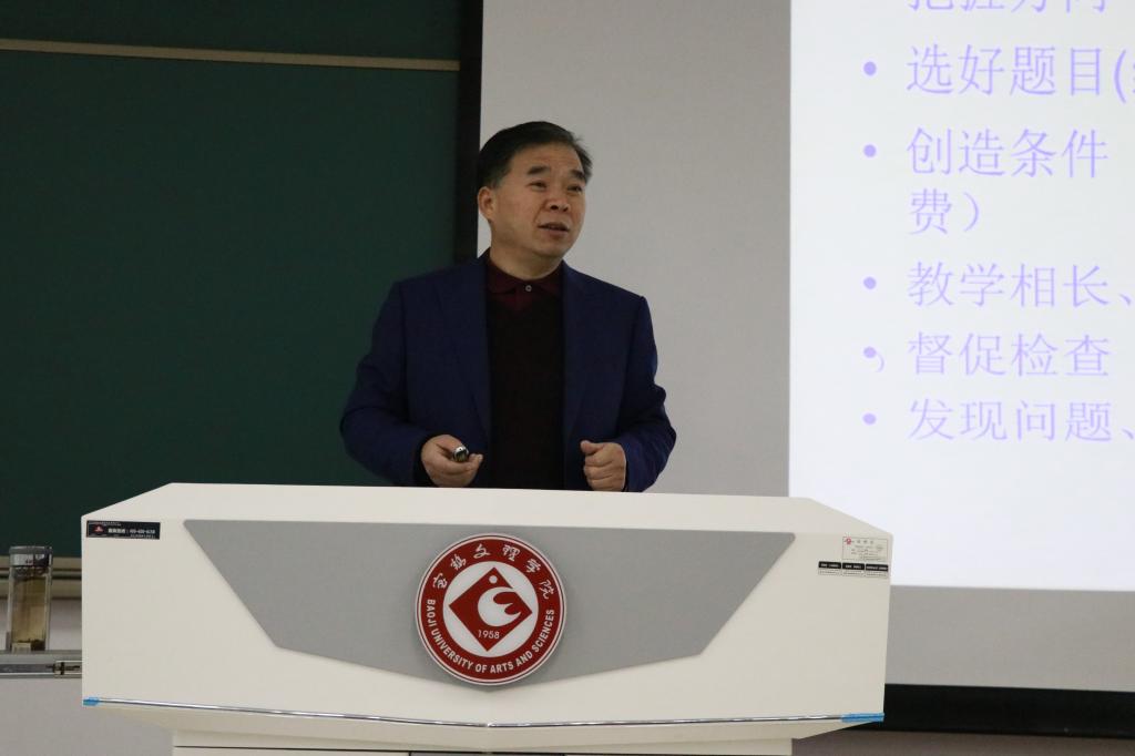 司晓宏教授从研究生核心培养要素、研究生培养过程的相关经验、研究生论文指导的心得、研究生创新性培养、研究生导师立德树人等五个方面作了详尽阐述。他强调,导师在实际指导过程中要站在提升全校研究生培养质量的高度,严格要求、规范指导,增强提高研究生培养质量的责任感、紧迫感和使命感,切实履行好导师职责。