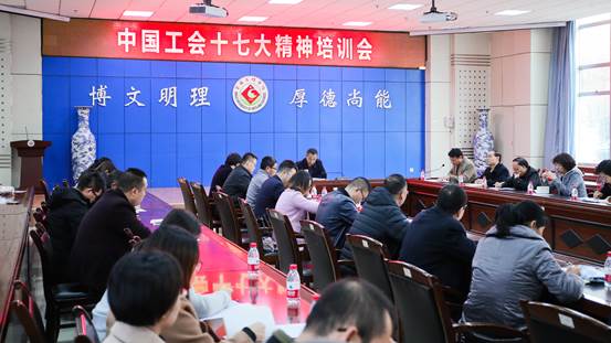 11月22日下午,党委副书记傅志军在新校区甘棠厅主持召开了中国工会十七大会议精神学习培训会。