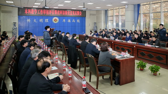 当天下午,王润孝主持召开了回访检查情况反馈会。会上,王润孝组长代表专家组对审核评估整改回访检查情况进行了全面总结,并通报了专家组对学校审核评估回访检查形成的初步意见。专家组成员分别提出了对学校整改工作的意见和建议。专家组充分肯定了学校审核评估整改工作,认为学校高度重视本科教学工作审核评估整改工作,不断深化教育教学改革,加强师资队伍建设,调整和优化专业结构,严格教学过程管理,加大教学投入,改善教学基本条件,加强开放办学,提升国际化办学水平,整改工作取得了显著成效。同时,专家组也从教学条件改善、学科专业建设、师资队伍建设、课堂教学改革等方面提出了意见和建议。