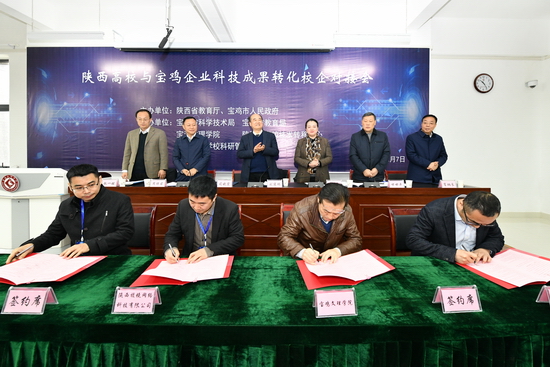 陕西省教育厅科技处、陕西省高校技术转移中心、陕西高等学校科研管理协会,宝鸡市科技局、教育局、发改委、人社局、工信局、国资委、农业局、卫计局、各县(区)负责人,各县区科技局、工信局的相关人员,西安交通大学、西北工业大学、西北农林科技大学、西安电子科技大学、陕西师范大学等27所高校代表,宝钛特种金属有限公司、宝鸡力兴钛业科技有限公司、秦川机床工具集团股份有限公司等36家企业负责人参加了校企对接会。(党委宣传部、科技处 文/陈宇秦、董燕 图/钟磊)