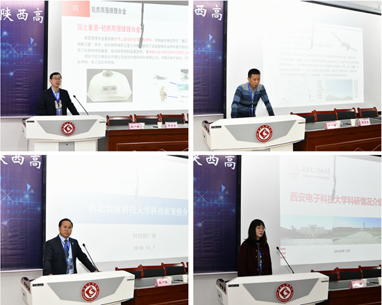 教育厅科技处处长甘世平主持了高校科技成果项目发布会和校企对接洽谈会。西安交通大学、西北工业大学、西北农林科技大学、西安电子科技大学、长安大学、西北大学、西安建筑科技大学等高校发布了最新科研成果,随后高校和企业代表进行了对接洽谈。