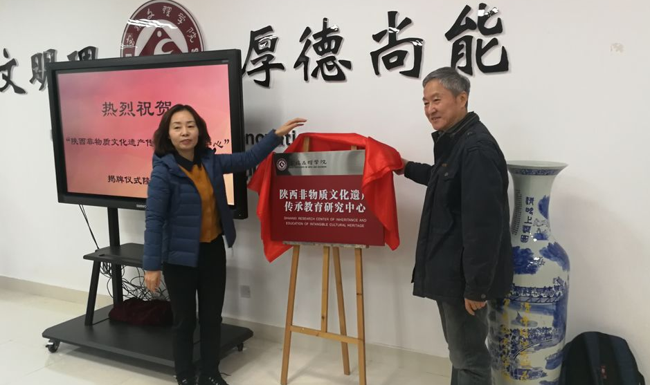 李景宜宣读了学校成立“陕西非物质文化遗产传承教育研究中心”的文件,并与修建桥一起为中心揭牌。桑晓靖宣布了中心特聘学术顾问、专家及研究员名单并颁发聘书。特聘学术顾问常智奇研究员与中心主任、美术学院院长王宝强教授分别致词。揭牌仪式后参会人员一起参观了开元宝鸡民间美术展厅,中心聘任的各位学术顾问、专家和传承人围绕非物质文化遗产保护传承与中心的发展目标等专题开展了学术研讨。