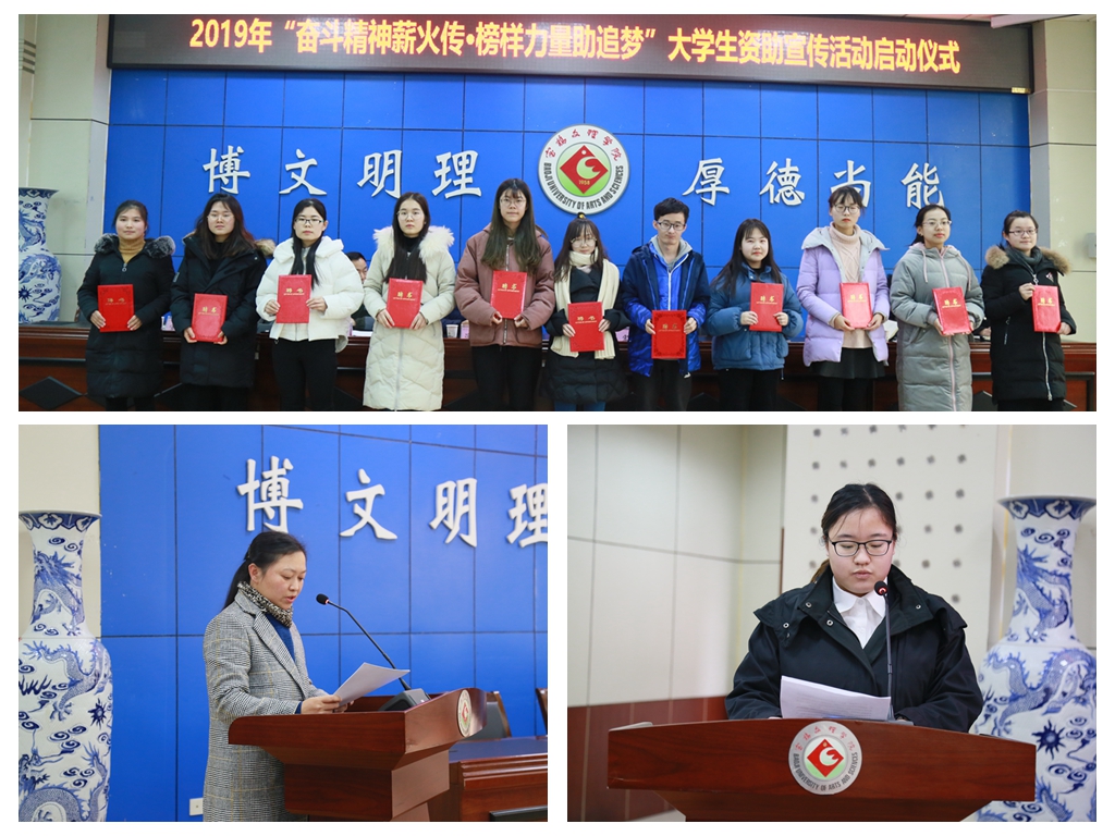 1月3日,学校在甘棠厅举行了2019年“奋斗精神薪火传•榜样力量助追梦”大学生资助宣传活动启动仪式。校党委副书记栾宏为学生资助宣传大使颁发聘书并讲话,仪式由学工部部长、学生处处长冯森主持。