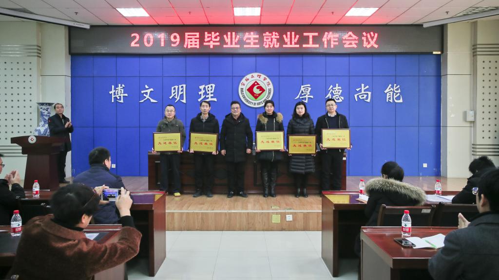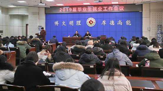 党政办、教务处、学生处、学科建设与研究生教育管理处、保卫处、团委等职能部门负责人,各学院党总支书记、院长、副书记及全体就业辅导员以及2019届毕业生代表参加了会议。(招生就业处 文/史建刚 图/张平)