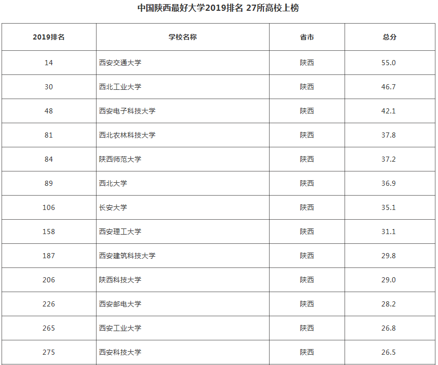 1月23日,世界大学学术排名(ARWU)最新发布2019“中国最好大学排名”,除我国台港澳地区之外综合实力最强的549所大学上榜,清华大学、北京大学、浙江大学位列前三。其中陕西共有27所高校上榜,西安交通大学排名全国第14陕西第1名,西北工业大学全国第30陕西第2名,开元全国排名343名,陕西第18名。